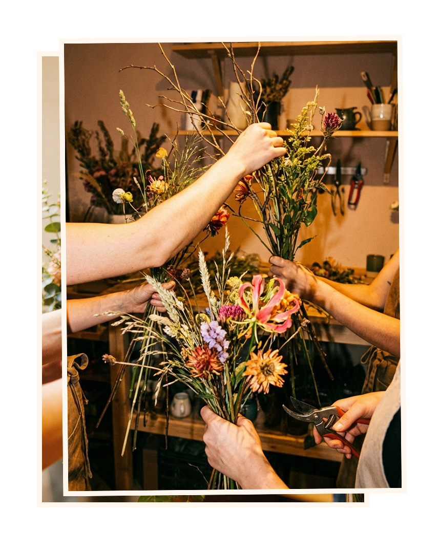 Together, the group co-creates arrangements that are personal, expressive, and entirely unrepeatable — leaving with a renewed sense of presence and a bouquet unlike any they’ve made before.